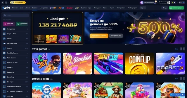 У онлайн-казино 1Win общий сайт с одноименной букмекерской конторой, что упрощает процесс игры для гемблеров. На данный момент здесь также действует бонус до 500%, а еще есть еженедельный кэшбек 30% от проигрыша за неделю. Количество игр от ведущих провайдеров превысило 3 000, есть масса слотов с джекпотами.